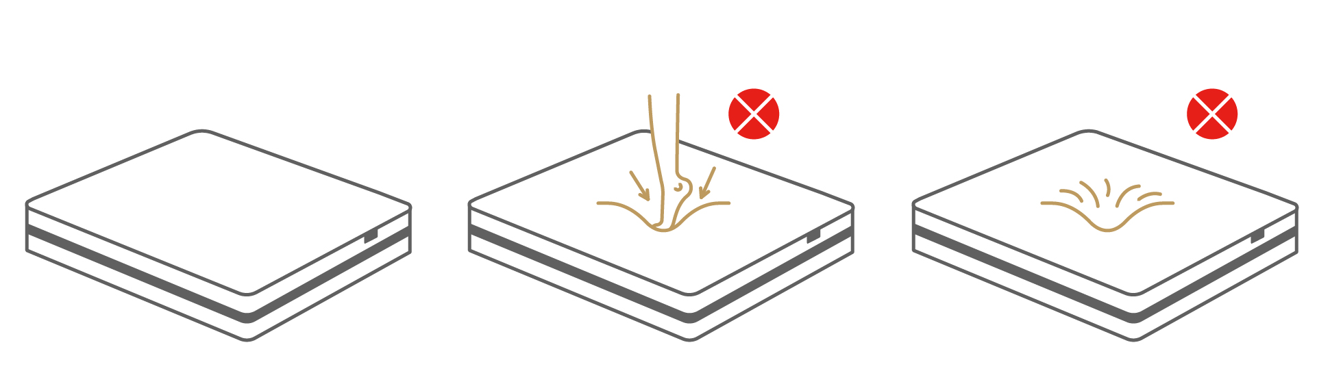 有時候小朋友喜歡在床墊上跳躍,易造成單點承受過大重力,導致獨立筒彈簧變型,或是床墊結構體受損,除了造成小朋友的危險外,變型的床墊也容易影響睡眠品質。所以盡量避免在床上跳,安全又安心~