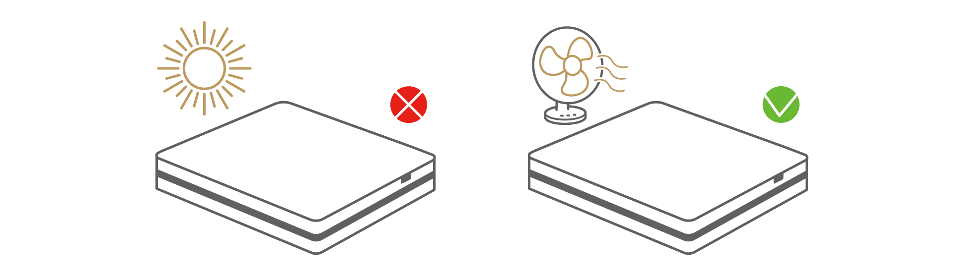 床墊的舒適層是以不同的材質組合而成,舒適層經過度曝曬,容易劣化質變,建議放置陰涼處通風即可。