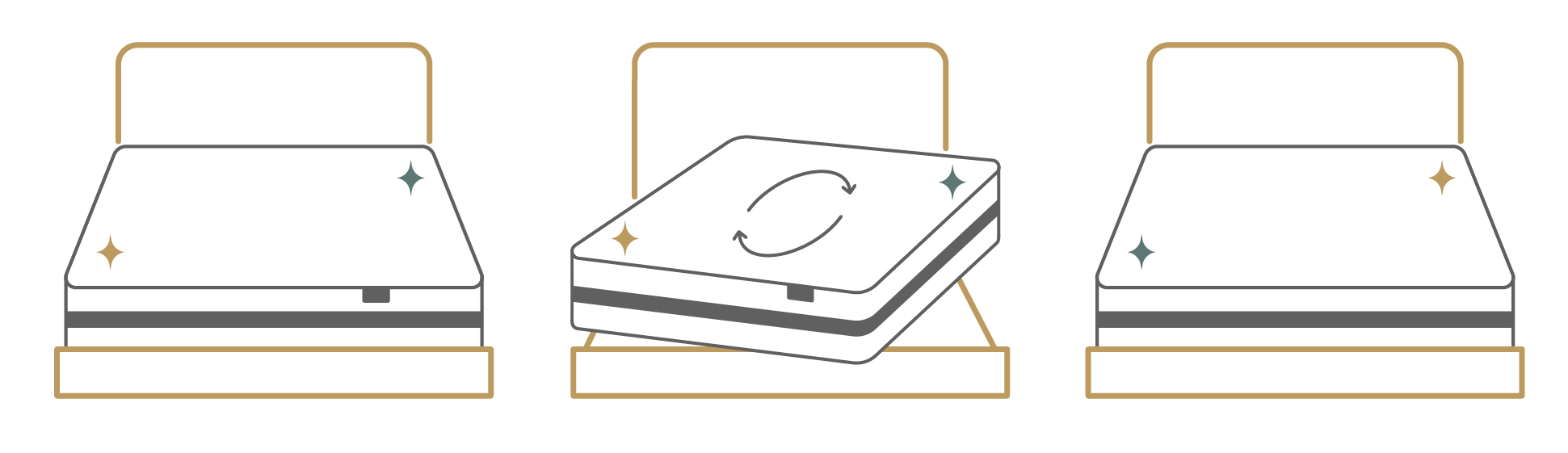 床墊因每個人的重量不一,而產生不一樣的受力,定期翻轉能降低床墊受力不均的問題,使床墊壽命更長久之外也能保持良好的睡眠品質。