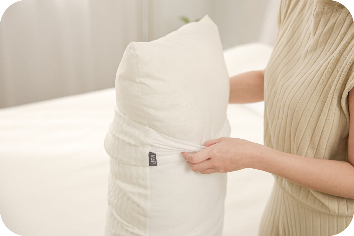 好窩防水保潔枕套 採用信封式的設計,將枕頭完整防護,除了延長枕頭使用壽命,更讓你安心舒眠到天亮